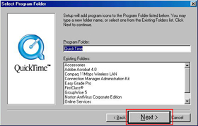 QuickTime explains what program folders will get QuickTime program icons. Click the "Next" button to continue.