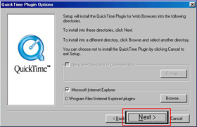 QuickTime explains that it's installing the QuickTime Plugin in the internet browser. Click the "Next" button.