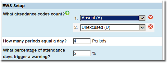 The percentage of attendance days is calculated from the start of the school year for each student. Attendance alerts are not calculated until the student has been in school for 3 weeks (21 days).