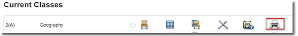 Teachers can run an Early Warning System Report by clicking the printer icon opposite the class of interest: